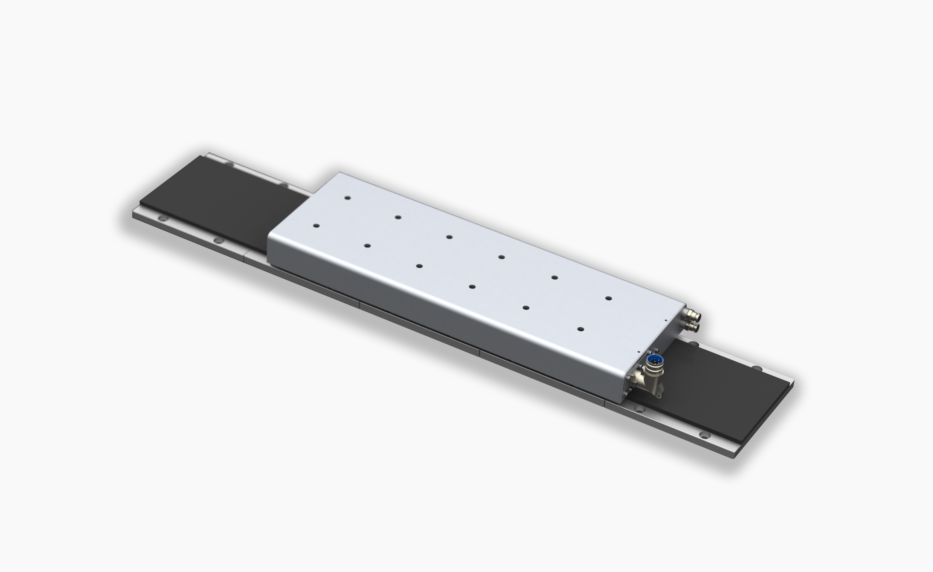 應(yīng)客戶要求:“設(shè)備X軸負(fù)載約500KG,Y軸負(fù)載約650KG,希望兩軸快移速度能達(dá)到60m/min,加速度能達(dá)到1G,以提升效率,重復(fù)定位精度達(dá)到0.003mm,以提升孔位精度CPK?!辈捎梦宜局本€電機(jī)驅(qū)動(dòng),以達(dá)到高速高精度定位,X軸選用DLMF-0403W永磁直線電機(jī),Y軸選用DLMF-0404W永磁直線電機(jī)。