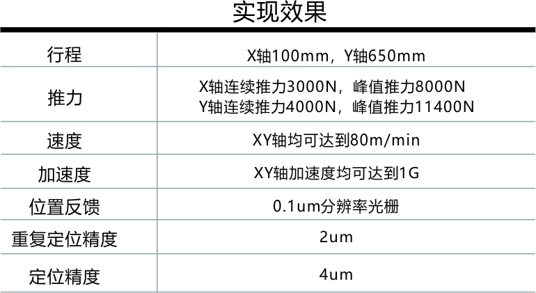 昊志機(jī)電還開發(fā)了直線電機(jī)檢測(cè)平臺(tái)。公司現(xiàn)用測(cè)檢平臺(tái)具備定位力、推力常數(shù)、推力波動(dòng)、推力線性、堵轉(zhuǎn)測(cè)試、溫升耐受、長(zhǎng)時(shí)運(yùn)轉(zhuǎn)、負(fù)載試驗(yàn)、超載試驗(yàn)、定位精度、重復(fù)精度、加工模擬、壽命試驗(yàn)等等數(shù)十個(gè)運(yùn)轉(zhuǎn)項(xiàng)目的檢測(cè)能力。內(nèi)部對(duì)直線電機(jī)產(chǎn)線要求嚴(yán)苛,所有DLMF系列電機(jī)必須通過上述項(xiàng)目的調(diào)試和考核,保證客戶端的每一臺(tái)DLMF電機(jī)都具備可靠的性能。